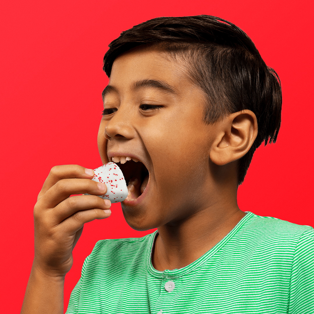 These pepperminty marshmallows are filled with pepperminty real milk chocolate filling, so you can take your hot cocoa to the next level. Also, they’ll make a perfect wintertime s’more or enhance your favorite rice crispy treat recipe!